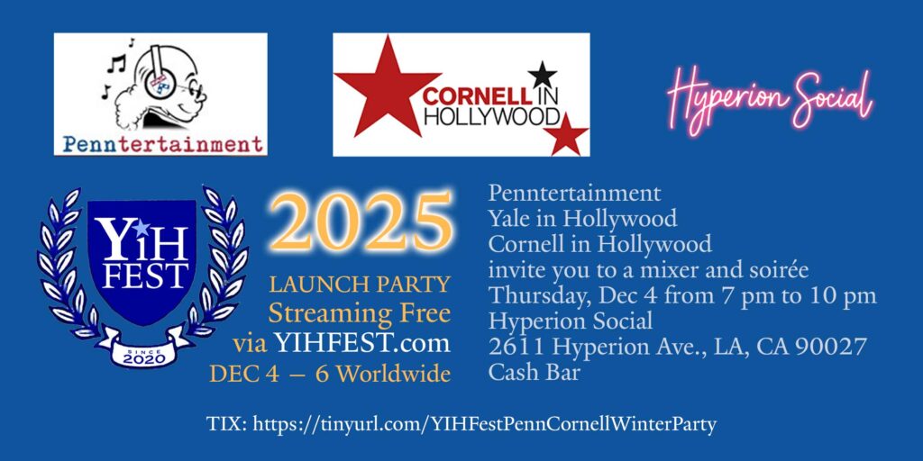 Welcome to the 2025 edition of Yale in Hollywood Fest, a global virtual film festival streaming worldwide from December 4 to 6, 2025. The online event will stream FREE its programs with FREE LIVESTREAMING Q&A events every day. Yale in Hollywood Fest showcases features and short films that include at least one Yale student, alumnus or current staff in the starring, producing, writing or directing chair.